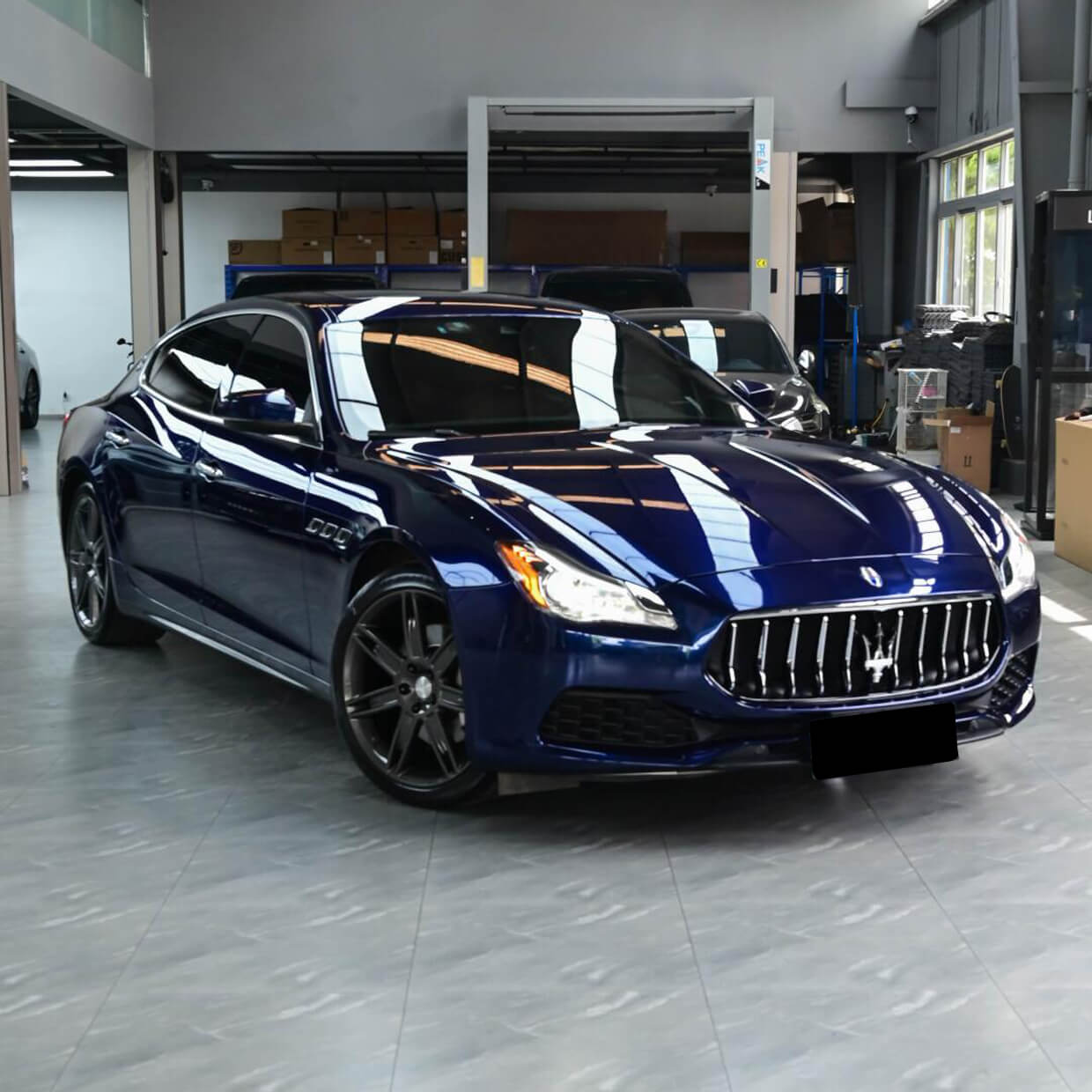 Deep navy blue color with metallic gloss finish