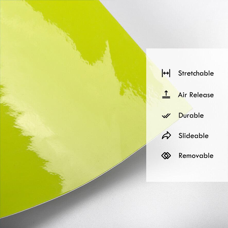 Featuring a rich lime green tone and a high-gloss surface, this wrap is ideal for vehicle owners seeking bold style and easy customization. Designed with both aesthetics and performance in mind, it provides a smooth, mirror-like finish while offering real protection against environmental wear.
