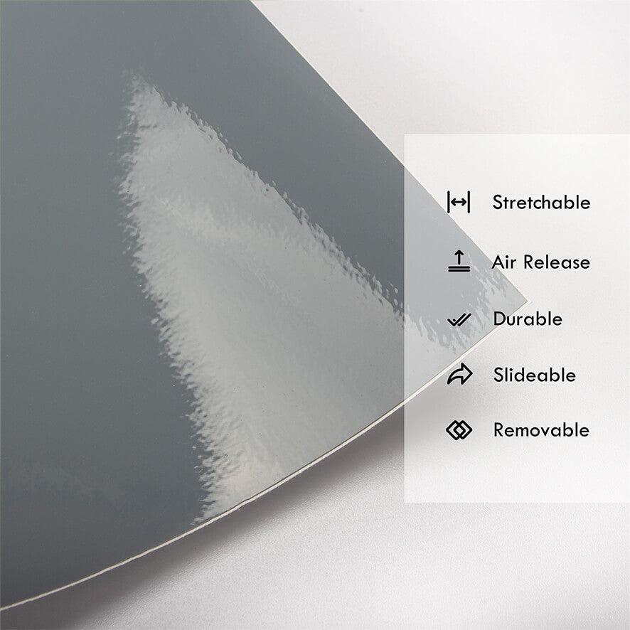 The glossy gray vinyl wrap is versatile and works great in both personal and commercial contexts. Its subtle yet bold tone brings a professional look to any project.