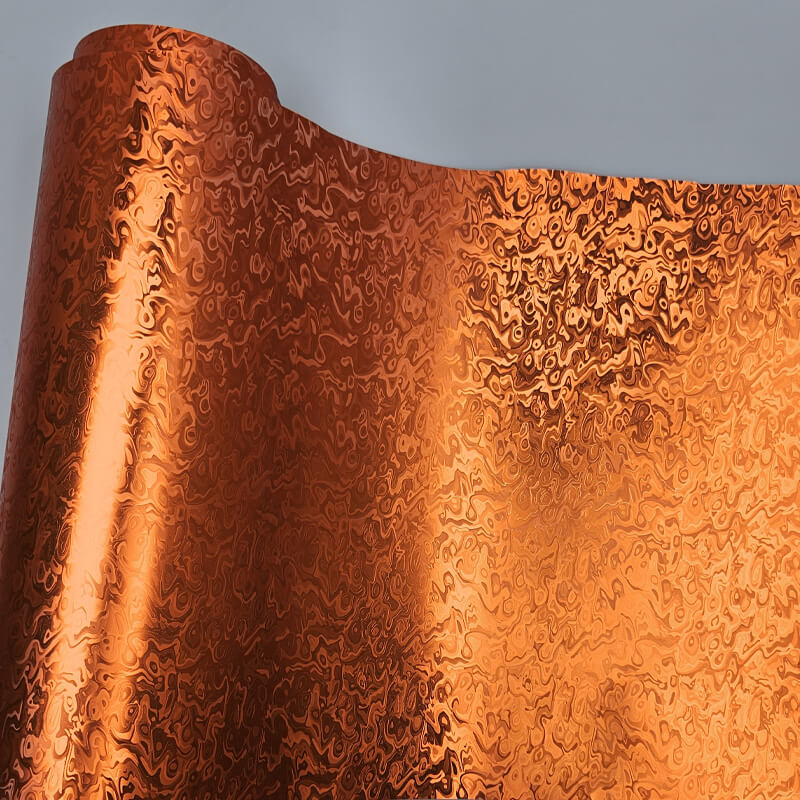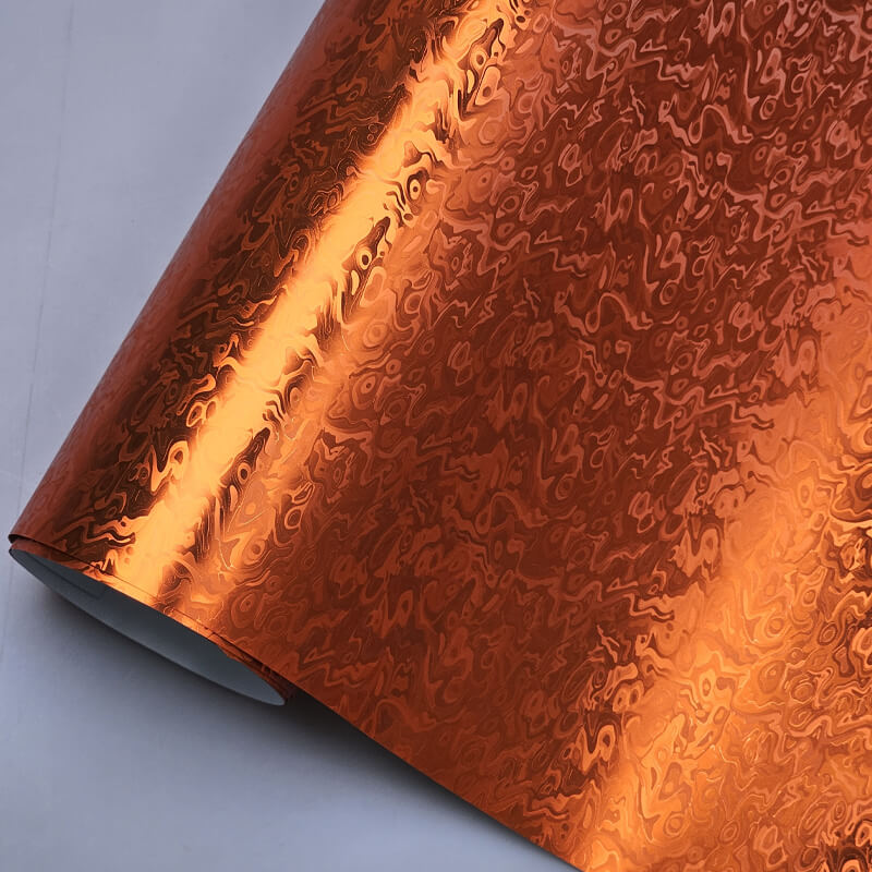 Gloss orange vinyl emphasizes brightness and shine, often making the color appear lighter and more reflective. Matte chrome Damascus orange uses a different approach by adding weight and depth through metallic density and layered pattern.